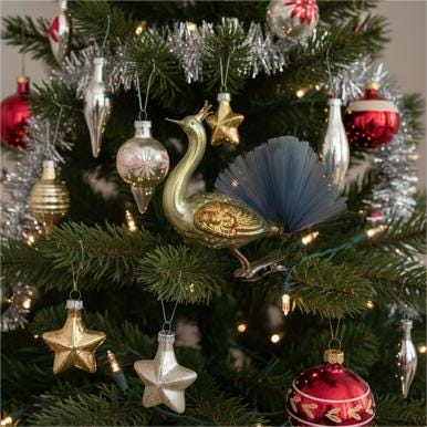 Gorgeous early 1900's glass clip peacock bird ornament in great vintage condition. He has a lovely patina, no breaks or cracks.