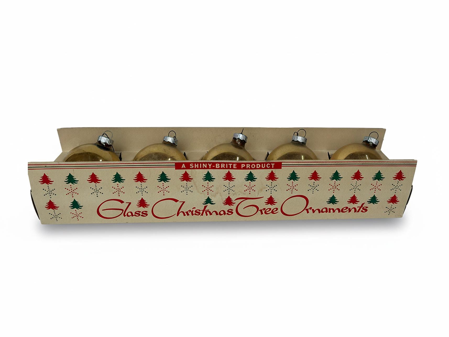 5 Gold Shiny Brite Ball Ornaments in Original Box Carton
