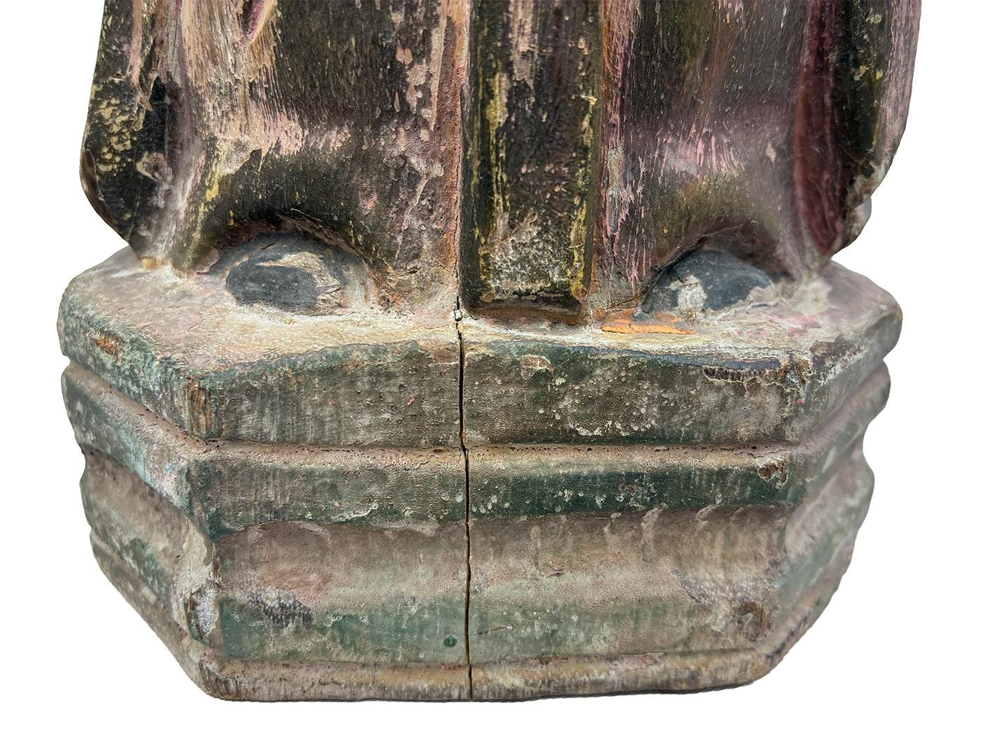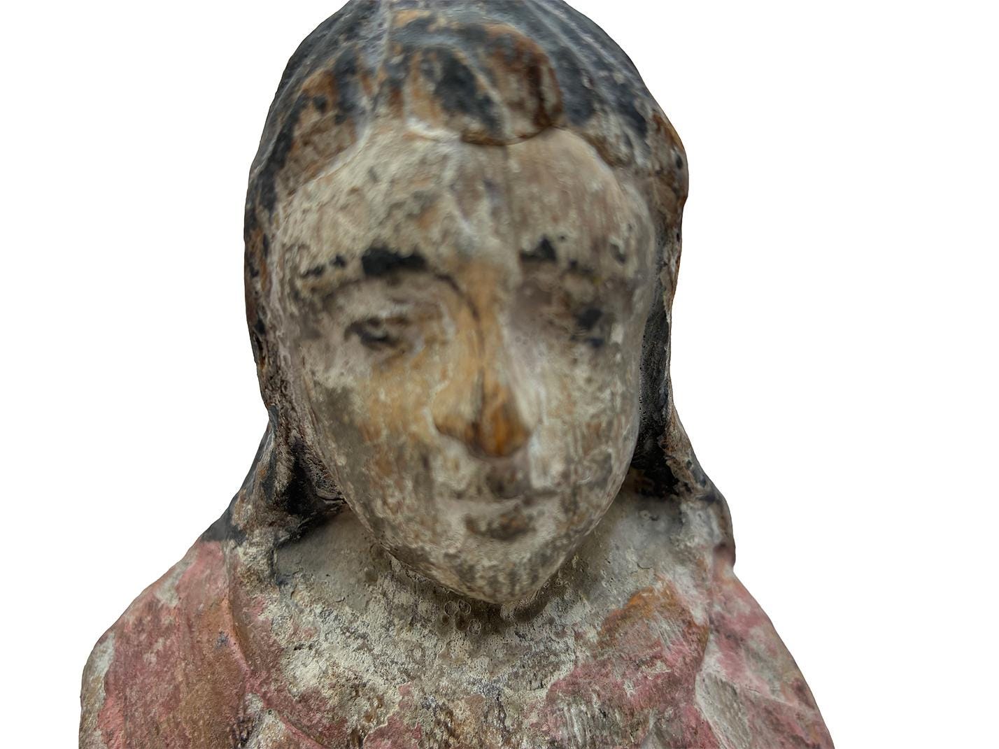 Antique 18th Century Hand-Carved Wooden Virgin Mary Santo — 12.5″ | Panamanian / Spanish Colonial Style